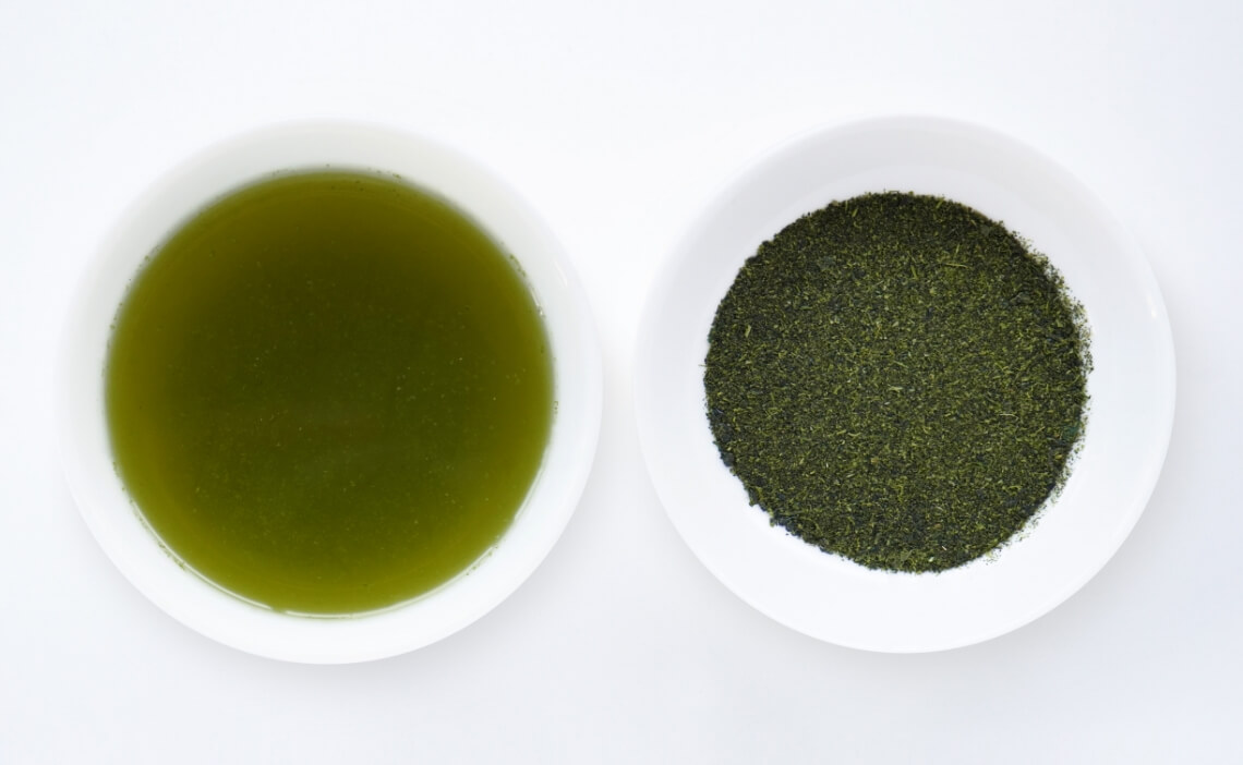煎茶は蒸し時間が短く「浅蒸し」とも言われ、黄みがかった薄い水色が特徴。深蒸し茶は煎茶の2〜3倍時間をかけて蒸したお茶。茶葉が細かく粉っぽい見た目ですが、水色と味が濃く、深みのある味わいが特徴。