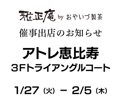 【催事出店のご案内】1月27日(火)よりアトレ恵比寿3Fトライアングルコートに出店致します。